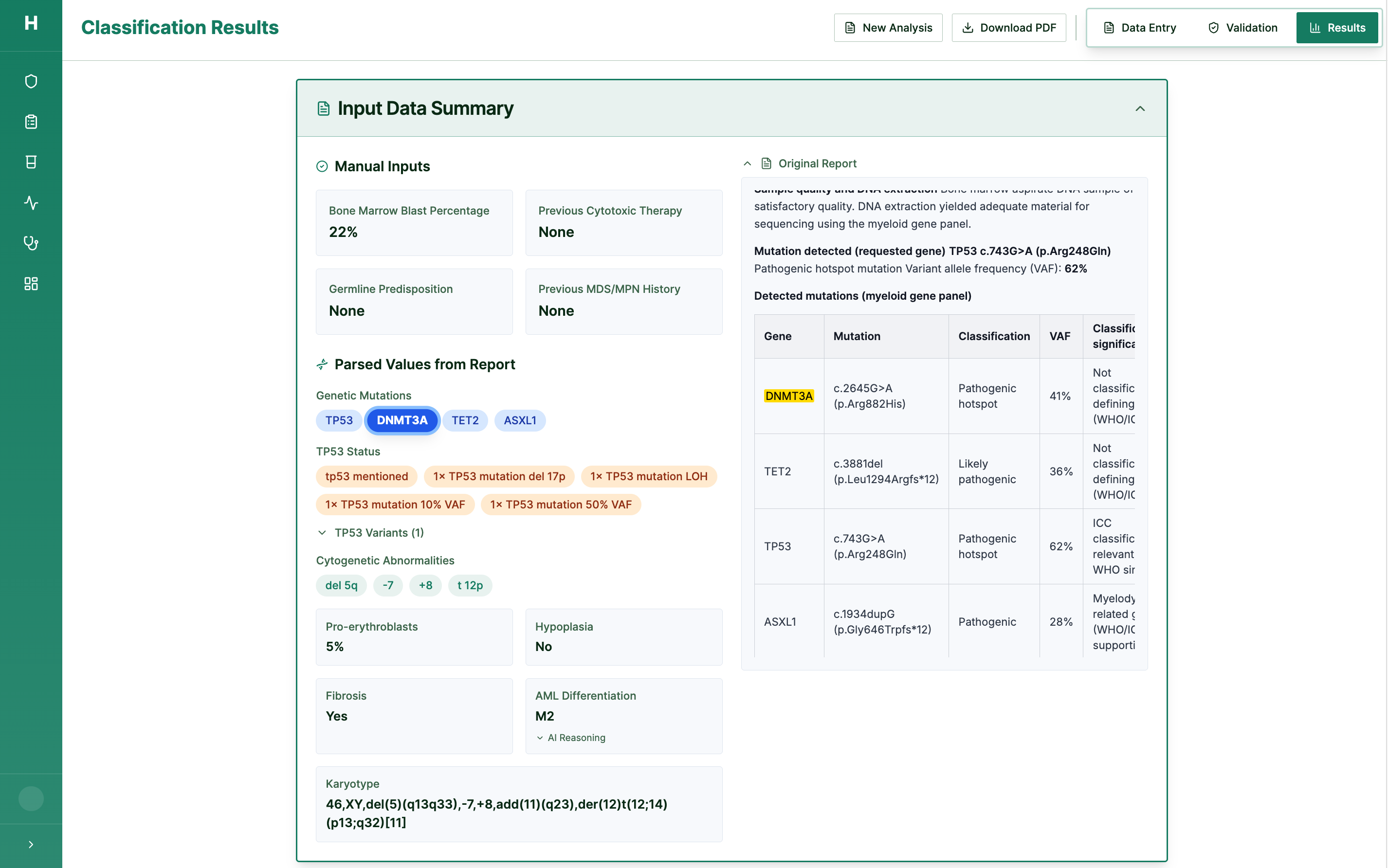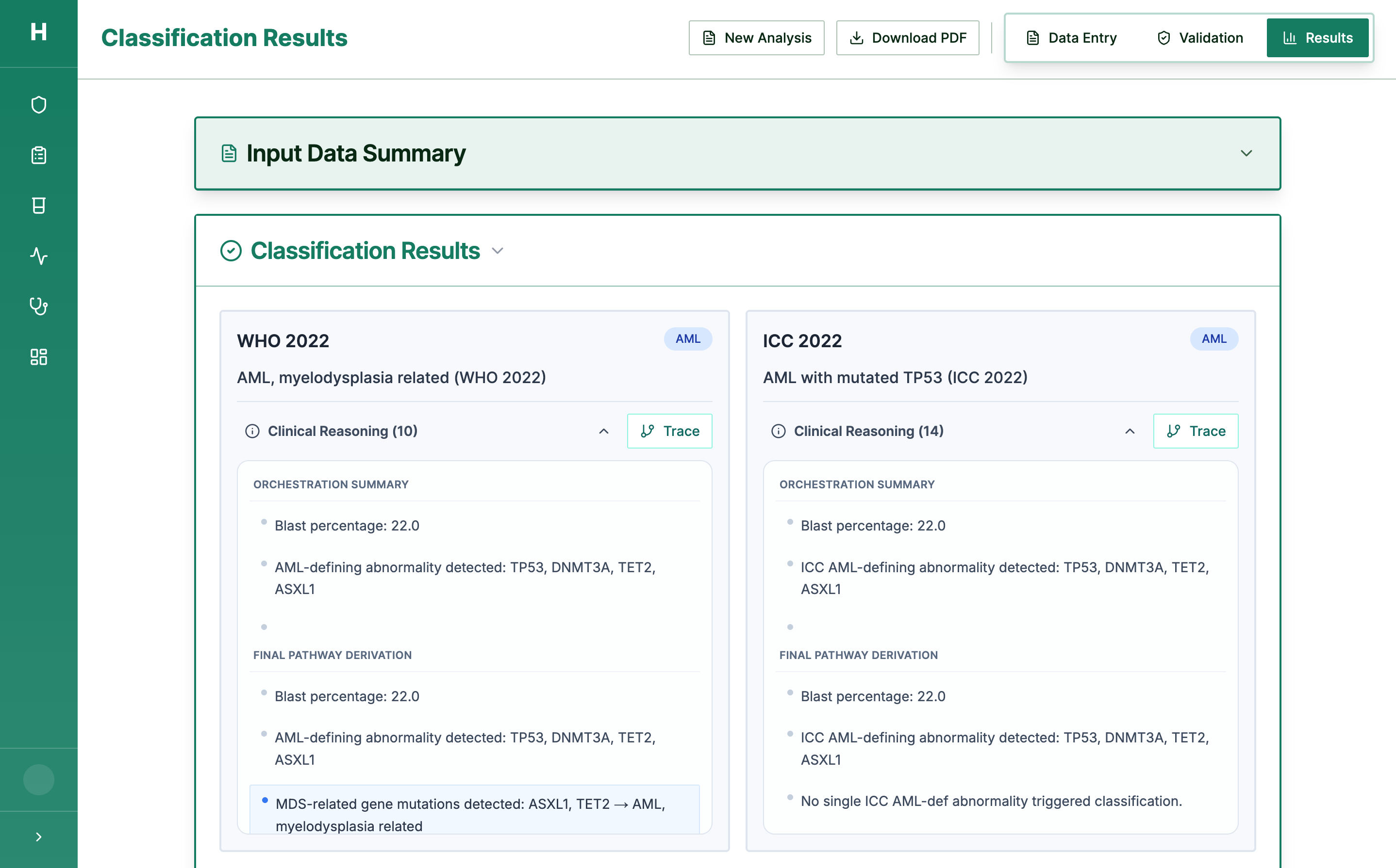 AML classifier, MDS classifier, and clinical trial matching — all LIVE in production. Covers all WHO 2022 and ICC 2022 subtypes.