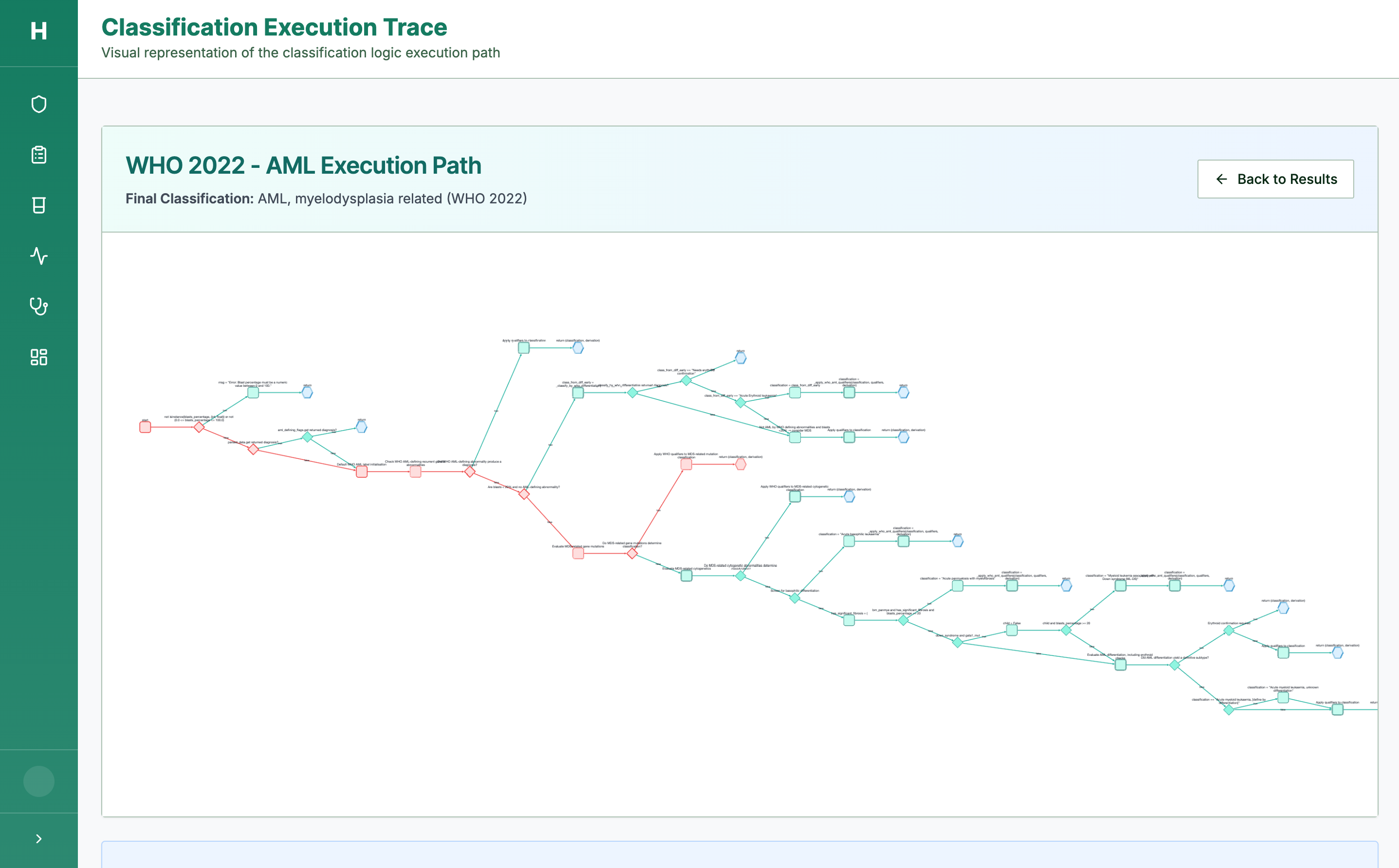 Our logic engine produces a full derivation trace — every diagnostic decision is auditable. Critical for clinical trust, regulatory approval, and clinician adoption.